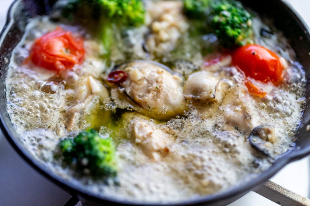 松软的肉上充满了浓厚美味的牡蛎,橄榄油和蒜香的香味非常搭配。