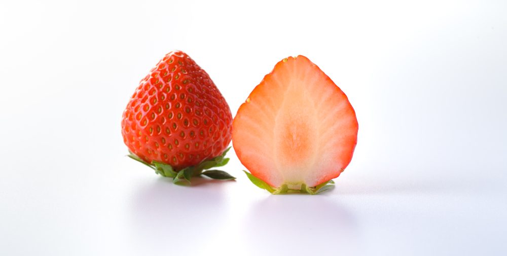 仙台湾附近,在海边的风和阳光下长大的鲜红草莓。
