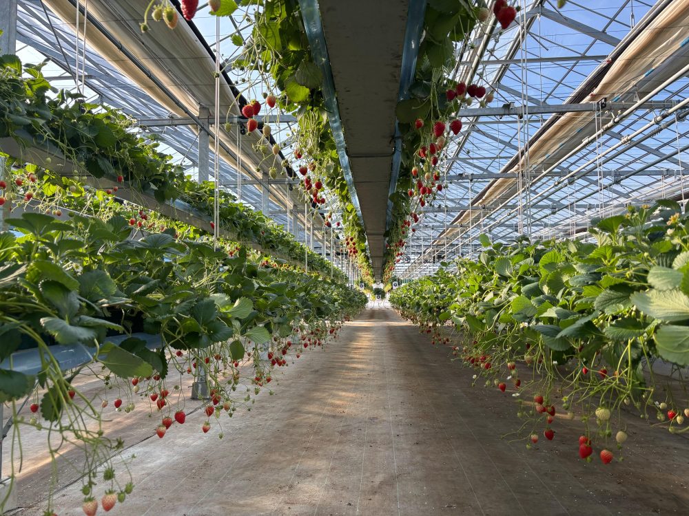 这是一个全年都可以采草莓的农场。即使是孩子也能在容易取的高度收获,宽敞的通道设计让轮椅和婴儿车也能放心移动。