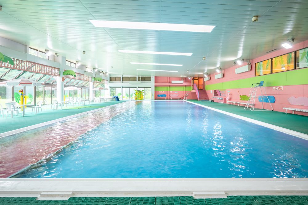 下雨天也能安心的室内游泳池。设有25米游泳池。