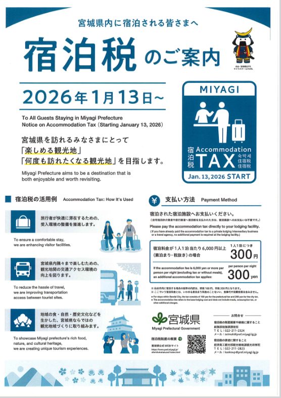 [Important] Information on accommodation tax in Miyagi Prefecture