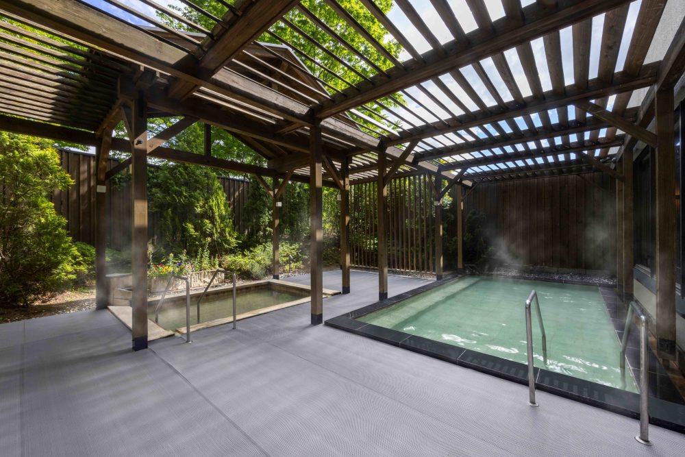 この地に残る、蟹と鰻の領域争いの伝説「不動の滝の決戦」にちなんで名付けられた湯。露天風呂にはヒノキと石造りの湯船があり、ヒノキの湯船は「かけ流し温泉」をお楽しみいただけます。遠刈田温泉の名湯を、蔵王の四季を感じながら心ゆくまでお過ごしください。