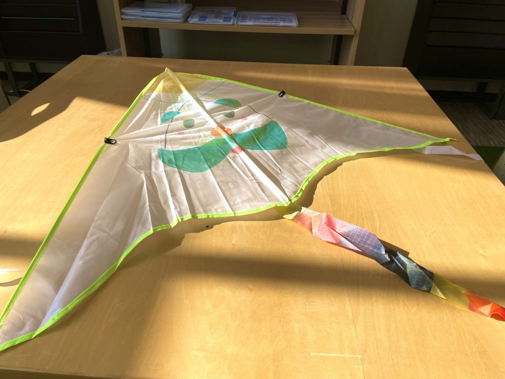 在風箏上用鋼筆自由地畫完畫後,請在院子裡放完成的風箏來享受。