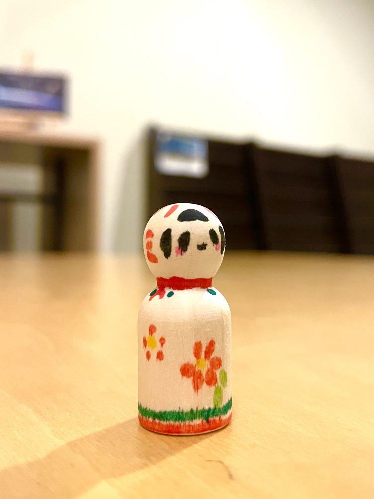 在木製的陀螺上用鋼筆畫畫,製作原創的陀螺。